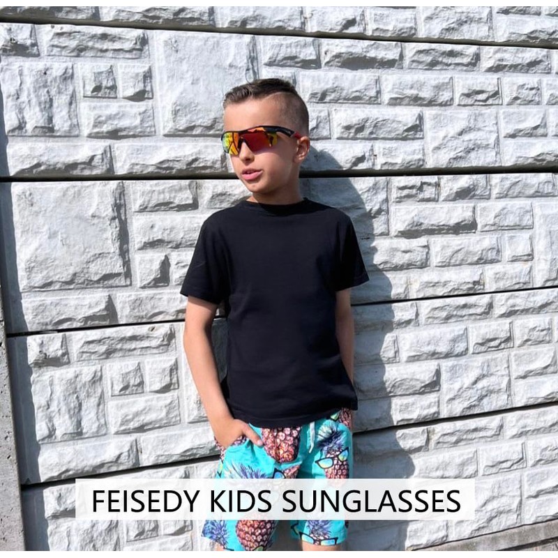 - FEISEDY Great fashion design polarized sport sunglasses protect children's eyes when skiing, cycling, running, driving, baseball and other outdoor sports activities. FEISEDY provide various colors for parents to choose. Both boys and girls can find their suitable sunglasses in FEISEDY. FEISEDY will do our best to do best.