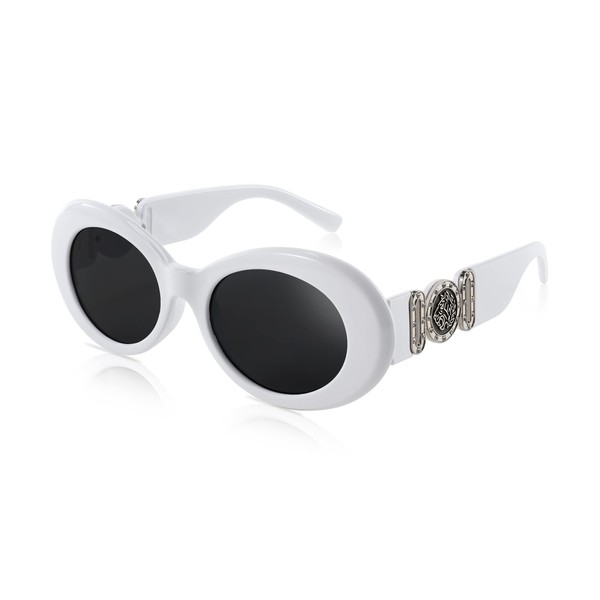 - FEISEDY Clout Goggles New Fashion Version Upgrades Design - these oval sunglasses feature smooth texture chunky acetate frames and wide temples decorated with Tiger elements and dark lenses, which are fashionable, retro and eye-catching. Metallic accessories brighten up a monotonous solid color outfit.