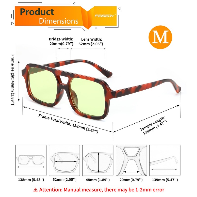 - [Hight Quality UV400 Protection] - FEISEDY stylish sunglasses are made of high-quality frame material, solid pc hinges, 100% UV400 protection against harmful UVA/UVB rays, all the details ensuring you a long time using.