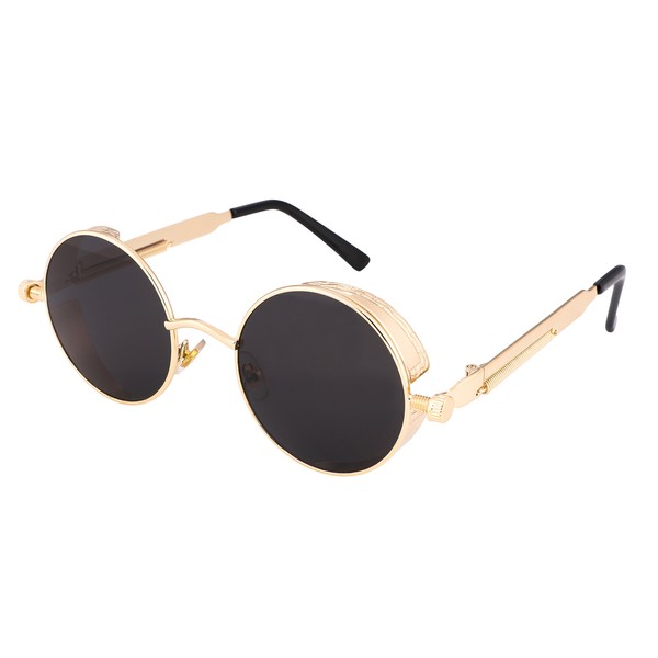 FEISEDY Retro Gothic Steampunk Sunglasses Round Metal Frame Punk Circle Inspired Shade Men B1857