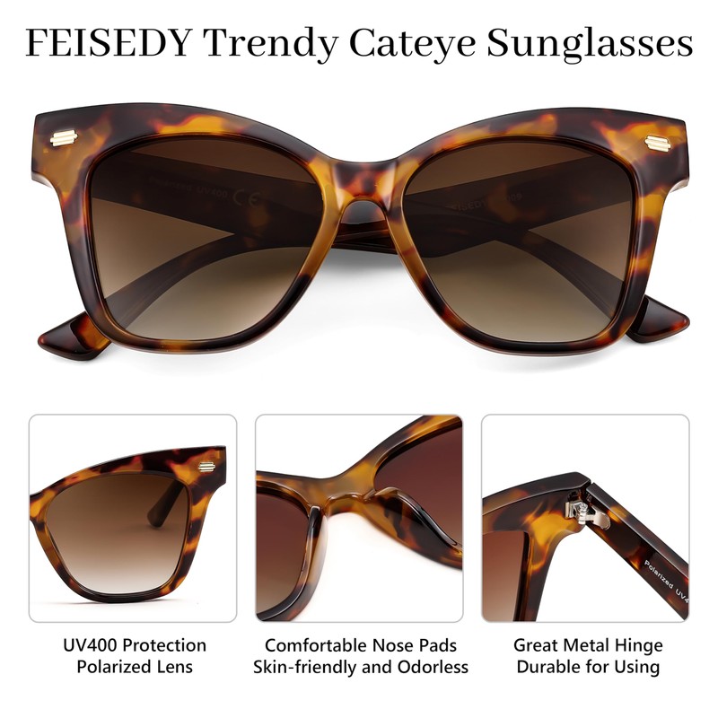 - [Suitable for Various Occasions] These FEISEDY sunglasses are brilliant existence in various occasion like shopping, traveling, vacation, photos, beach and party. You can choose them for daily wear all year round and for fashion accessories.