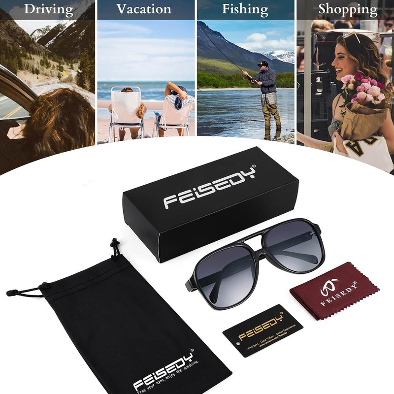 FEISEDY Vintage 70s 80s Sunglasses Men Women Fashion Retro Glasses with UV400 Protection Lightweight Frame B2751, Grey lens and black frame with colour gradient