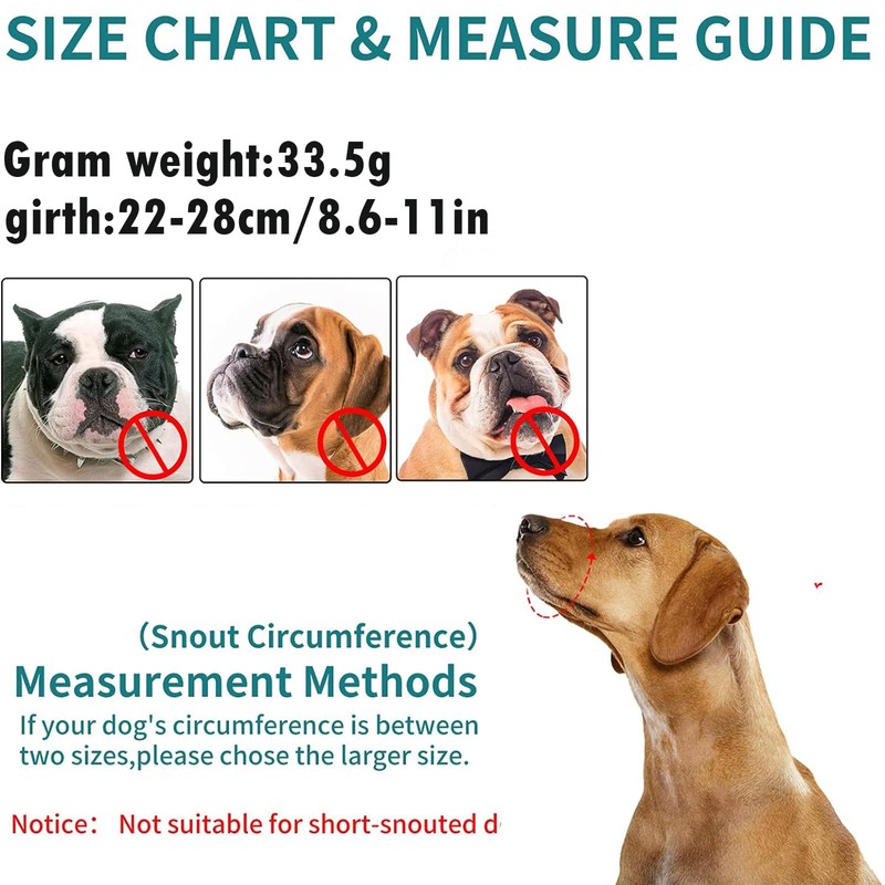 - 【Notice】To fit your dog better, please measure twice before buying. When you receive your muzzle, make sure that it is large enough to allow your dog to pant and that it is secure while wearing. If it is the first time for your dog to wear a dog mussel, please introduce muzzles to your dog with more treats, and they will be more receptive.