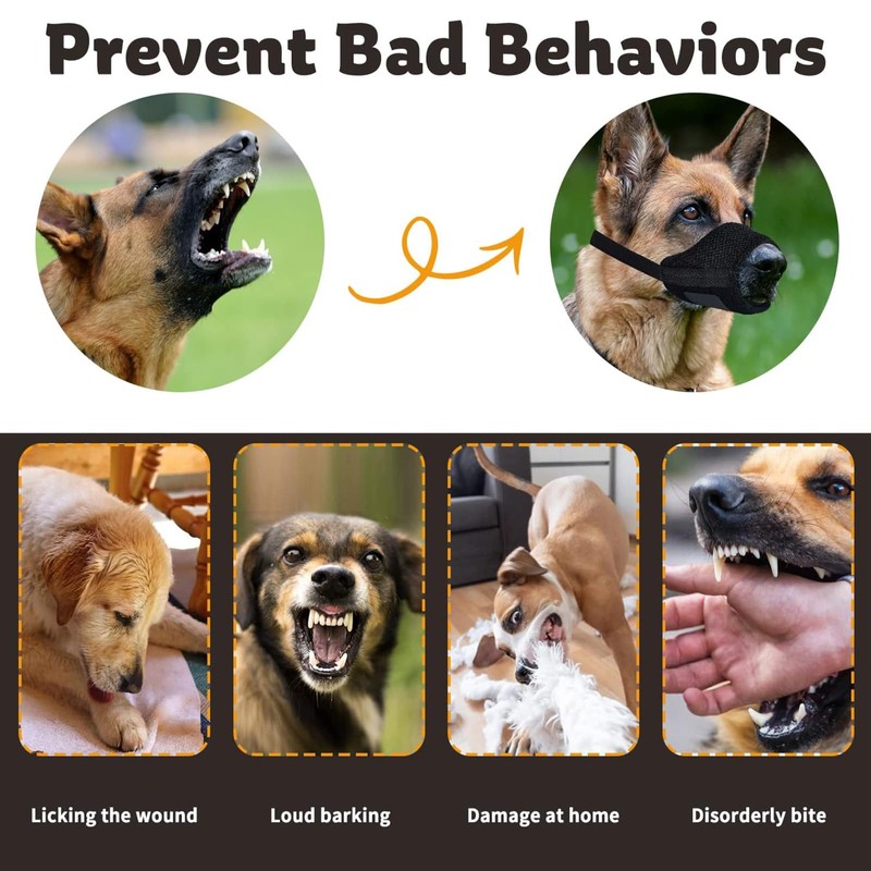 - 【comfortable and breathable】Dog mouth cover is made of breathable mesh material which is more soft and lightweight than other puppy muzzles, while also durable. It won't hurt your dog's mouth. No cheap material here! No sores. No pains.