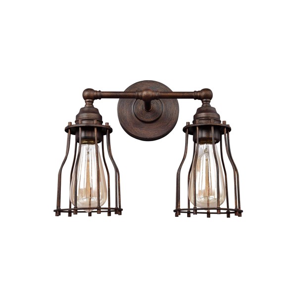 Feiss VS24002PRZ Calgary Industrial Vintage Wall Vanity Bath Lighting, Bronze, 2-Light (13"W x 11"H) 120watts