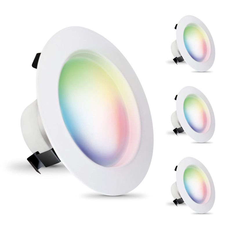 Feit Electric 4 Inch Smart Recessed Lights, Color Changing and Tunable White, 2.4GHz WiFi Retrofit LED Downlight E26 Base, Dimmable, 4 Pack, LEDR4/RGBW/AG/4