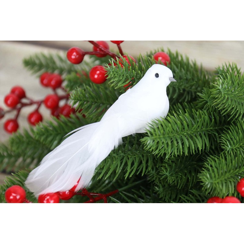 - EASY TO USE: Each artificial white dove has a alligator clip on the feet, so it is easy to attach to your flower arrangement, wreath, Christmas tree or decor