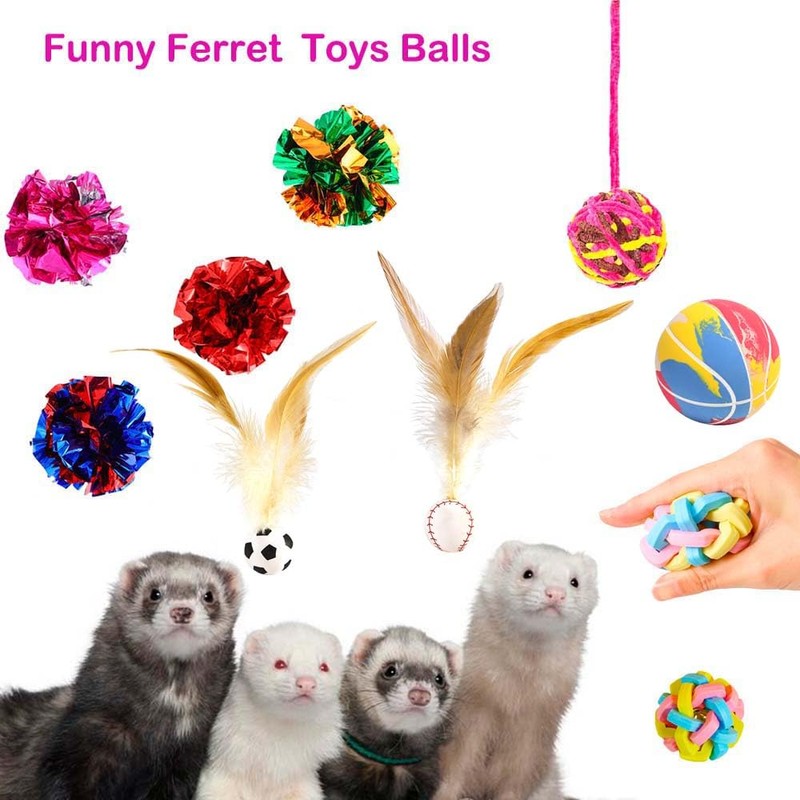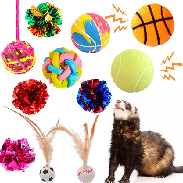 - Package Inculdes: 11 pcs ferret interactive toys.2 x differet squeaky balls, 1 x rubber bell balls, 1 x fluffy balls,4 x crinkle balls, 2 x bouncing small balls.
