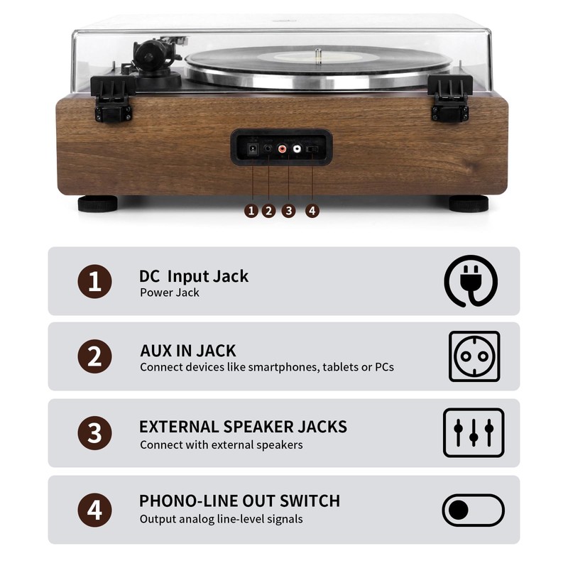 - High-Quality Cartridge and Counterweight: Key components for any premium turntable, the magnet-type cartridge and adjustable counterweight ensure balanced channels, delivering rich, warm, and authentic audio while minimizing noise and distortion.