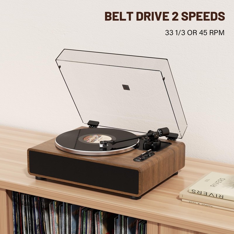 FEKTIK Record Player with Magnetic Cartridge, Bluetooth Turntable with Built in Speakers Phono Preamp, High Fidelity Belt Drive Turntable with Built-in Speakers Phono Preamp,2-Speed