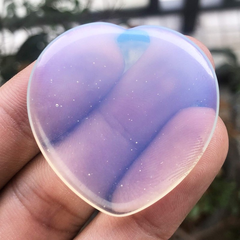 Fekuar Synthetic Opalite Crystal Thumb Worry Stone, Hand Carved Healing Crystal Heart Shaped Stone for Anxiety Stress Relief Meditation