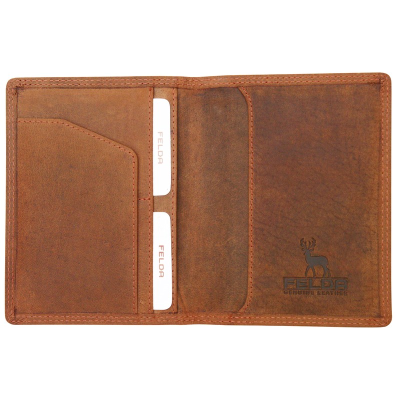 FELDA Genuine Leather Passport Holder - RFID Protection and Multiple Card Slots