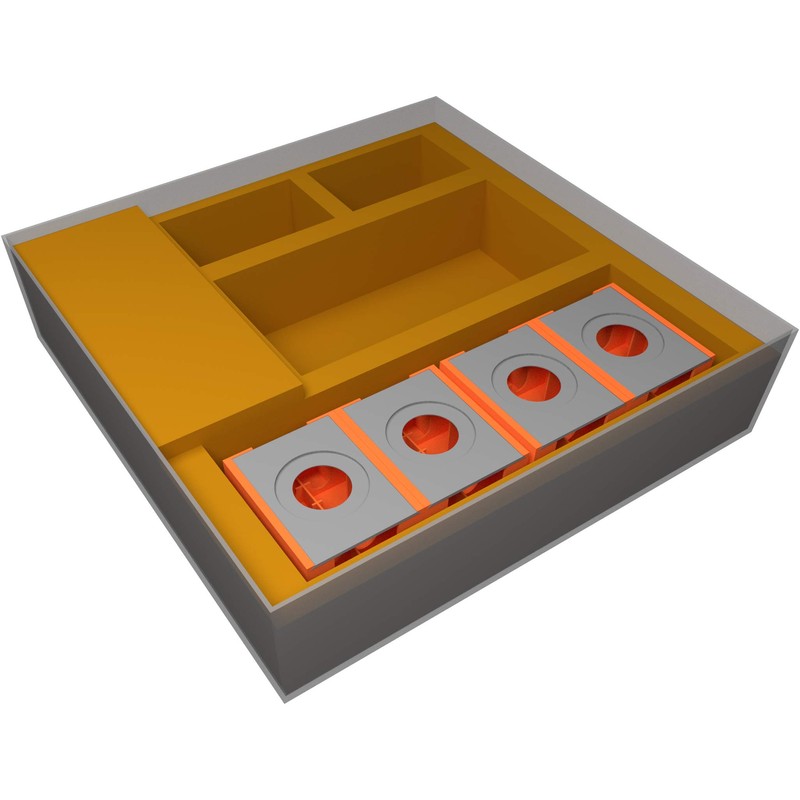 - The set consists of 4 token holders with sliding lids for sorted storage of markers and tiles for individual players, as well as 2 token trays for general playing materials. To store the token holder in the playing box, the original plastic tray of the deluxe edition is required. Playing cards, playing aids and money chips (poker chips) are stored in the plastic tray. Player trays and game plan are on top.