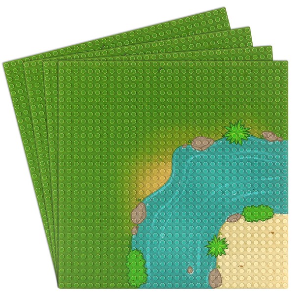Feleph 4 Pieces Classic Baseplate with River and Grassland Pattern Base Plates for Building Blocks 10 x 10 Inches Mat Compatible with Major Brands