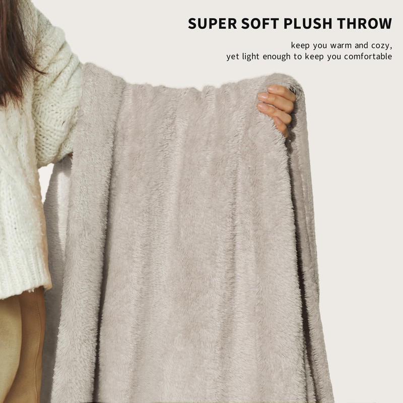 Felesha Fingal Plush Fleece Throw Blanket for Couch and Bed, Fluffy Fuzzy Cozy Queen-Size Soft Blankets All Season Use (60x80 Inches,Beige)