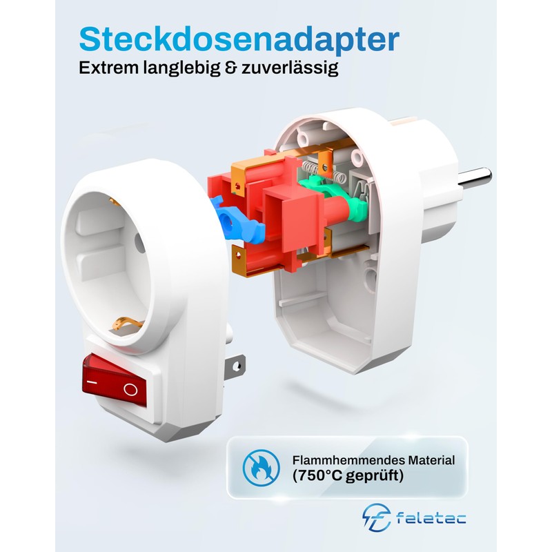 - Switch socket for more safety – with integrated child lock, the adapter prevents access to open contacts? Perfect for families.