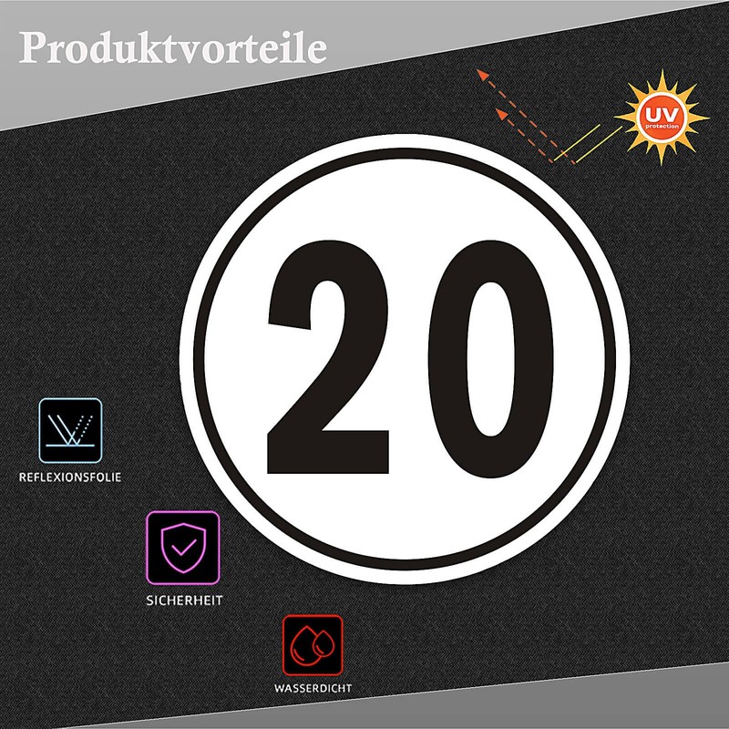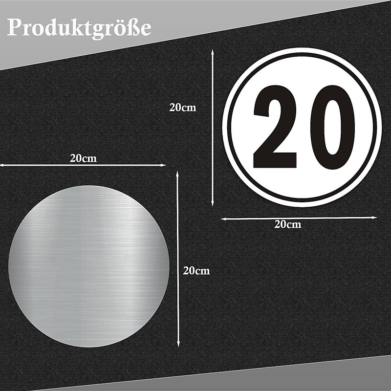 Felexdo Speed sign 20 km/h, round, 20 cm, top speed 25 km, made of aluminium, reflective, weather-resistant, easy installation for outdoor use, pack of 2