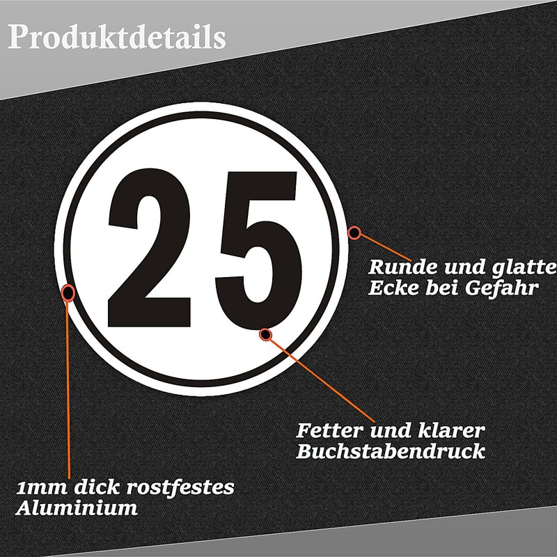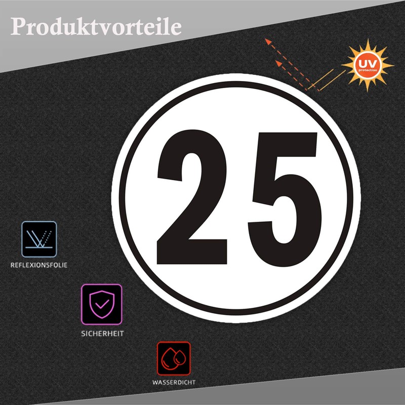 Felexdo Speed sign 25 km/h, round, 20 cm, top speed 25 km, made of aluminium, reflective, weather-resistant, easy installation for outdoor use, pack of 2