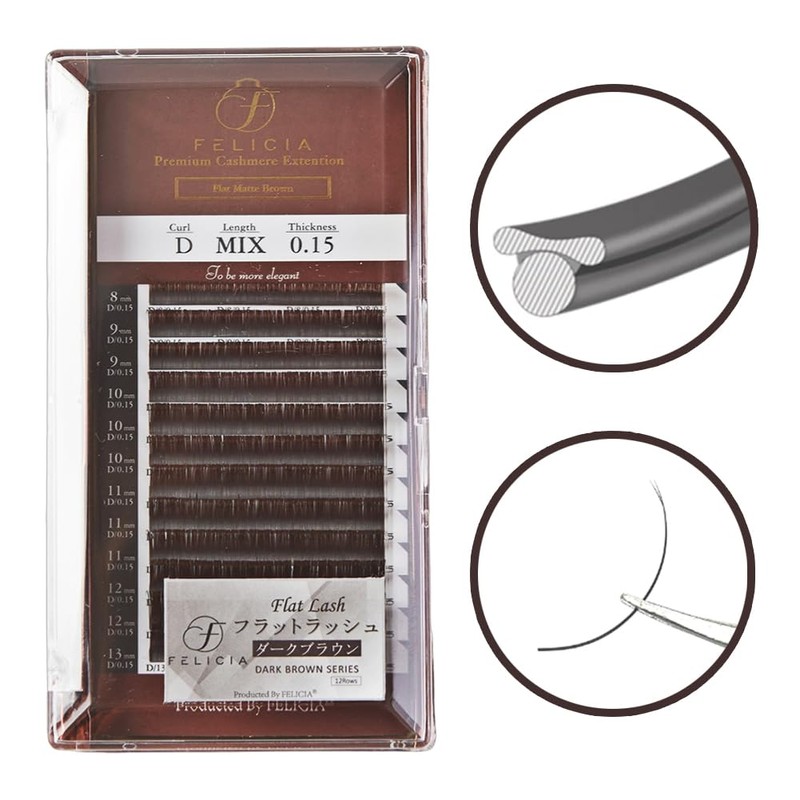 FELICIA [Dark Brown] Flat Lash Ultra Soft Eyelash Extensions Single Matsueku Eyelash D Curl 0.15 Thickness 0.03 - 0.5 inches (8 - 13 mm), Mixed