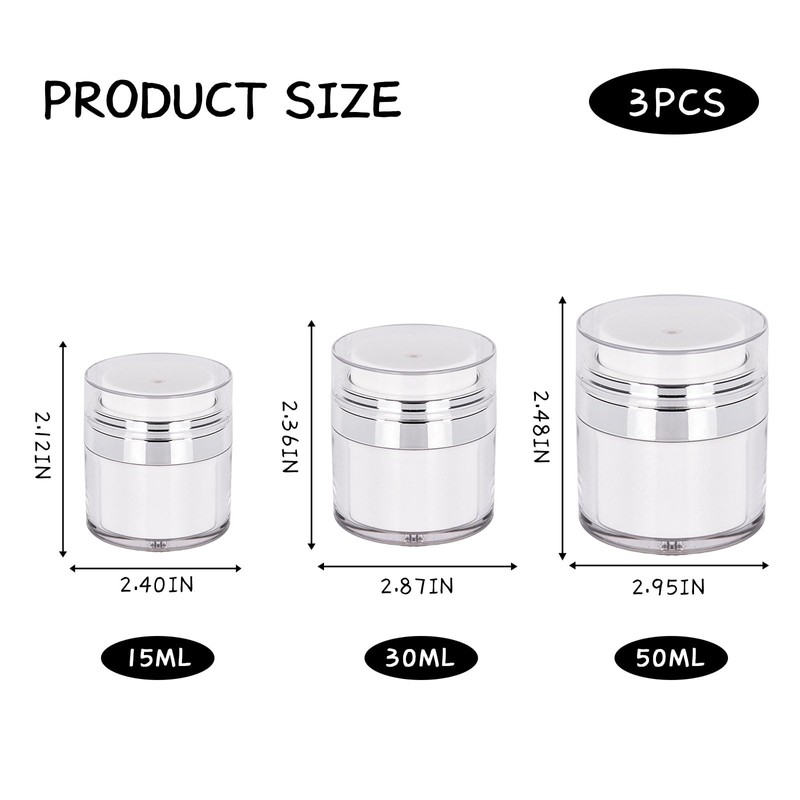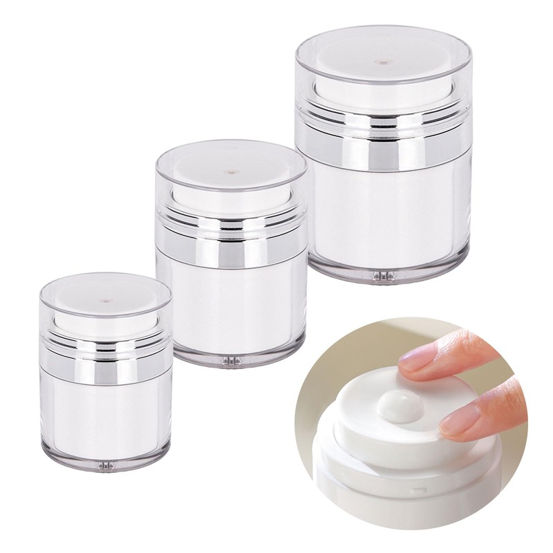 Feliciay Pack of 3 Cream Jars Vacuum Bottle, 15/30/50 ml, Airless Pump Dispenser, Empty Lotion Pump Bottle, Cream Dispenser Pump Container, Refillable, Portable Pump Container, Dispenser, Vacuum