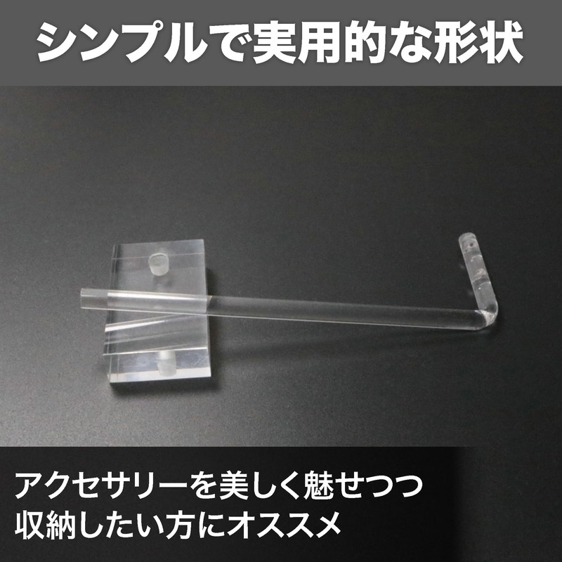 Simple and beautiful accessory holder: A clear acrylic base with an inverted L-shaped bar that can be used to create a simple and beautiful accessory holder. You will receive 2 pieces in 3 different heights. The clear design complements the beauty of the accessories and is popular as a retail appliance.