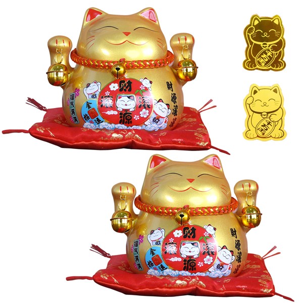 Felimoa Maneki Neko Money Bank Figurine Lucky Entrance with 2 Metal Stickers Set of 2