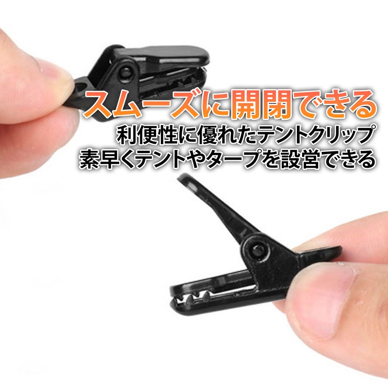 - Smooth opening and closing: The convenient tent clip opens and closes smoothly, so you can quickly set up a tent or tarp. The tent clip can withstand large tension, so you can use it again and again