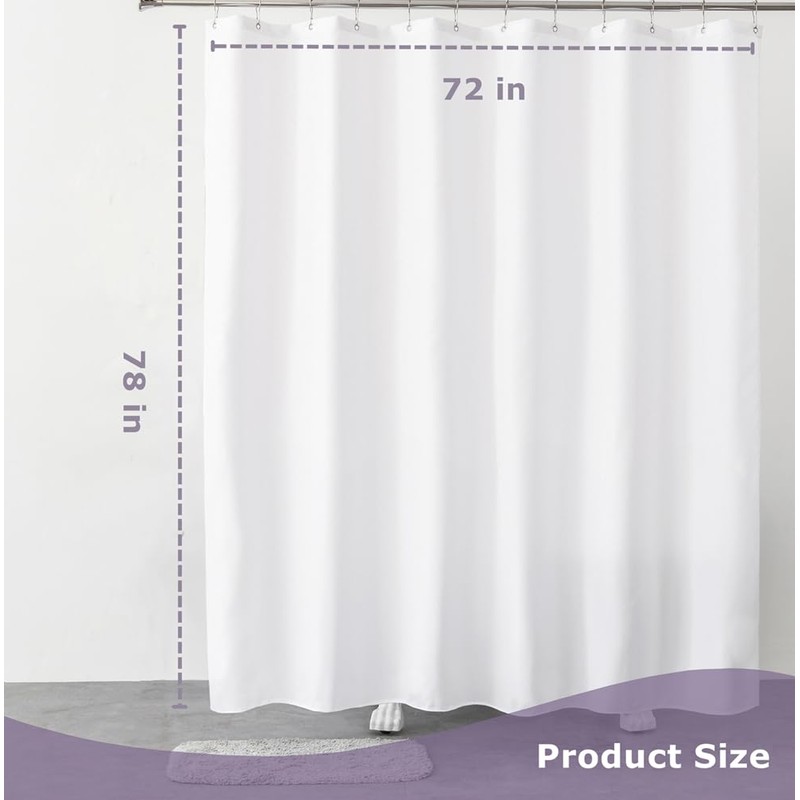 - Technical Specifications: Measuring 72x78 inches long size, our white shower curtain liner is perfect for any bathroom, providing ample coverage and a spa-like feel. Reinforced top header with 12 rust-resistant metal grommets is compatible with various style shower hooks and rings.