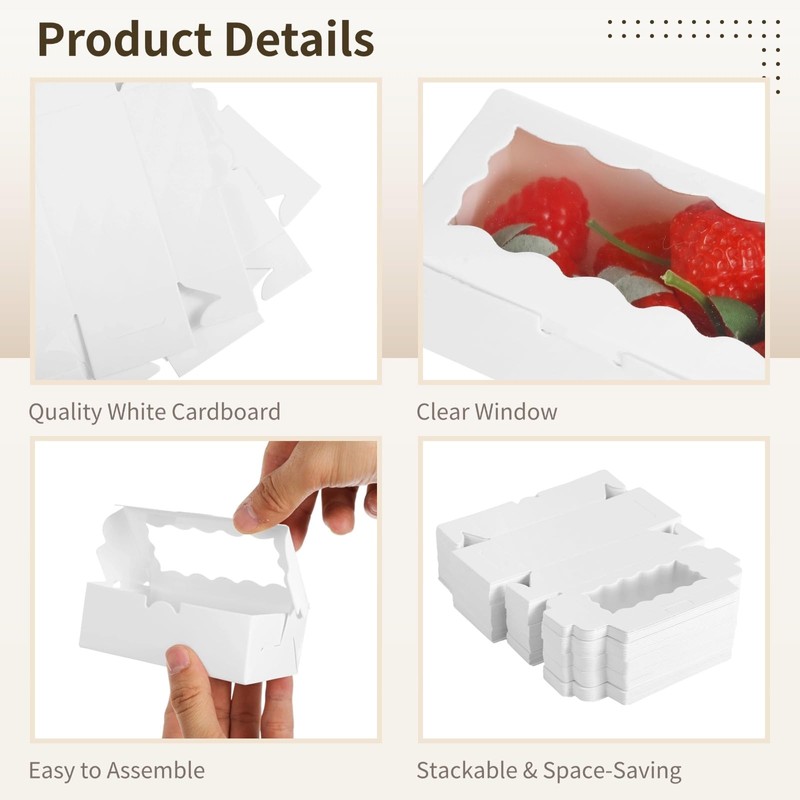 - Reliable White Cardboard: Made from quality white cardboard; ensures excellent reliability and sturdiness, providing strong support for your treats; offers a reliable and safe packaging solution without compromising the overall presentation and appeal