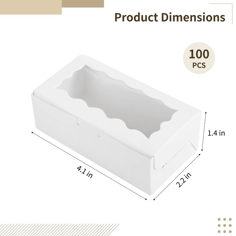 - Abundant Quantity: Comes in a set of 100 boxes; compact size of 4.1 x 2.2 x 1.4 inches is great for easy handling, transport, and display; great for professional bakers or home-based bakeries to meet daily packaging needs