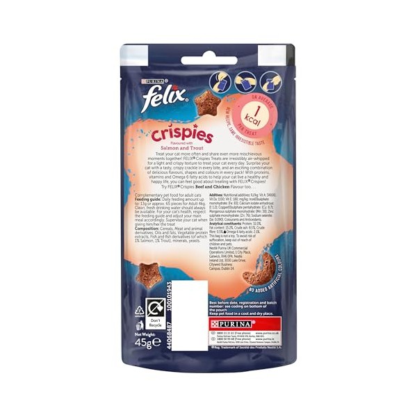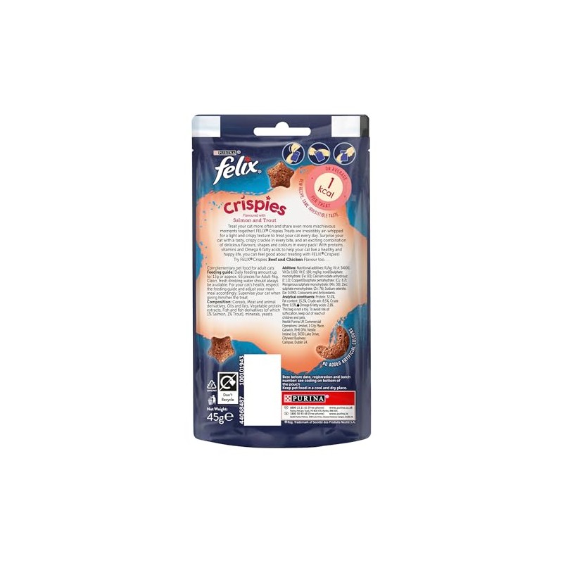 - With Proteins, Vitamins and Omega 6 fatty acids to help your cat live a healthy and happy life, you can feel good about treating with FELIX Crispies