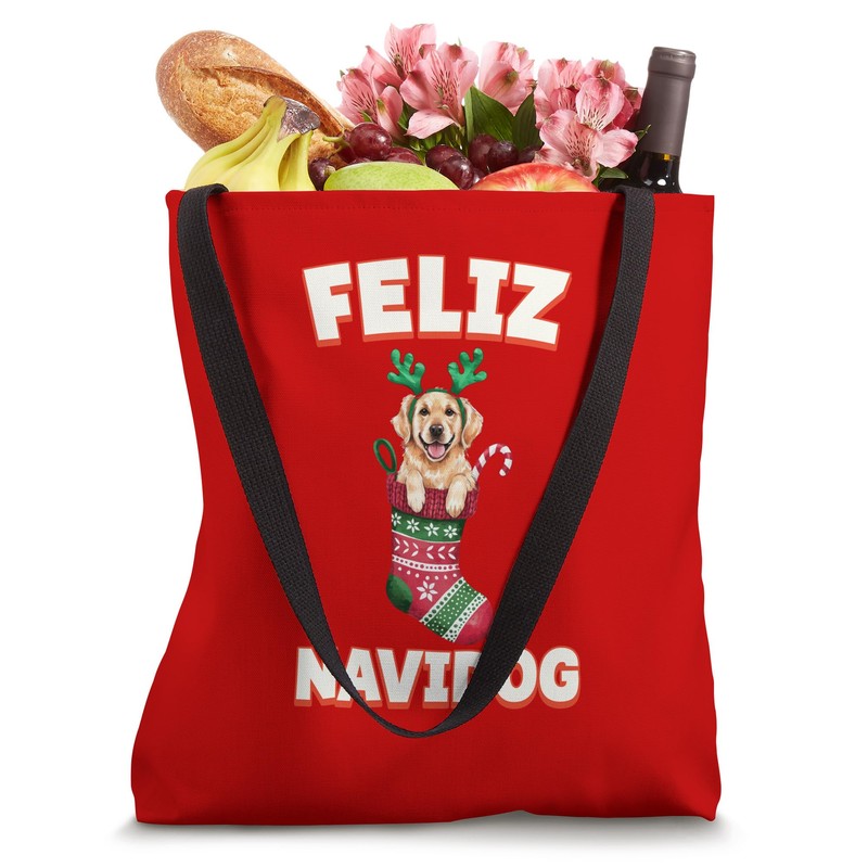 Feliz Navidog Christmas Dog Sock Golden Retriever Tote Bag