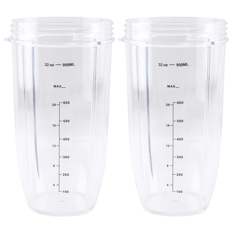 32 oz Tall Colossal Cup Replacement Part Compatible with Nutri Bullet 600W 900W Blenders NB-101B NB-101S NB-201. Package contains: 2 (two) 32 oz cup replacements; Cup Dimensions: 7.5 inches (height) x 3.9 inches (diameter); Cup Capacity: 32 ounces. Product features: BPA-free Plastic; Durable tritan cup; Dishwasher safe; Extract and blend in the same cup. Please note: NOT COMPATIBLE with Nutri Ninja, NutriBullet RX, Magic Bullet, or Baby Bullet blenders.