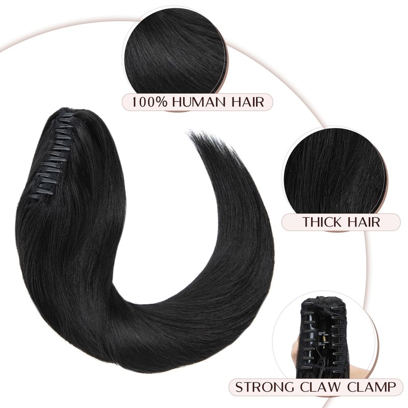 - Easy to wear: The design of the claw clip ponytail is easy to use, safe, and non-invasive. Let you quickly have a perfect look on a busy morning. Open the claw comb at the top of the ponytail and clip the extended part of the ponytail onto your own bun or ponytail. Easy to use, sturdy, and resistant to falling off when worn.