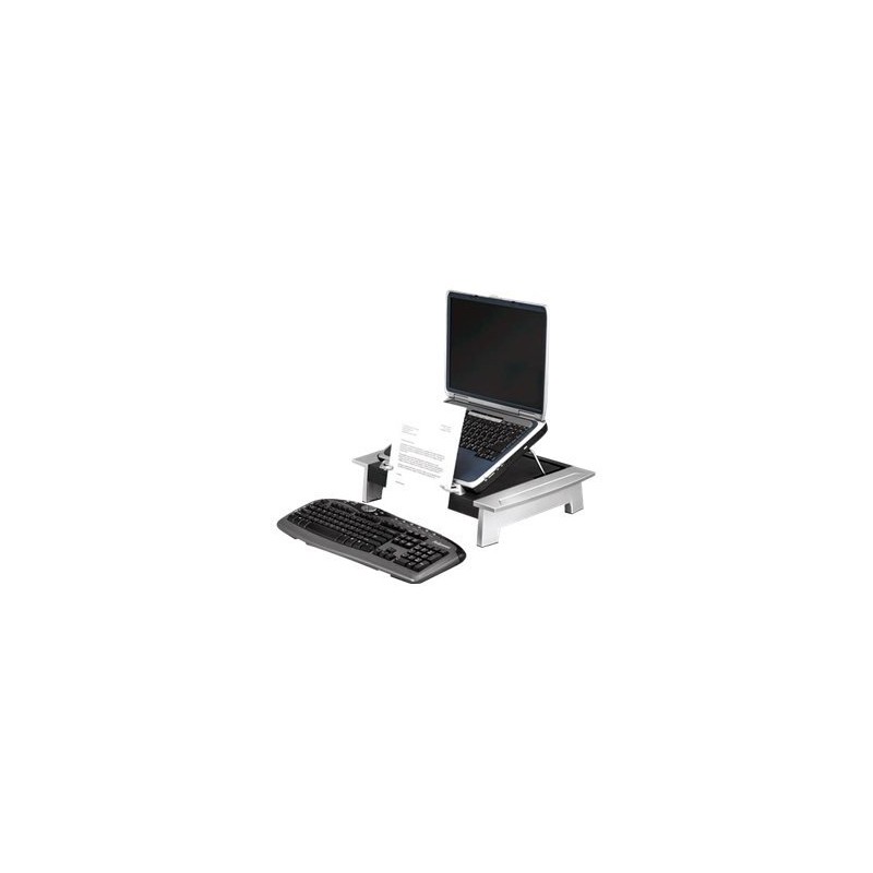 . Features 3-way height and tilt adjustment for laptops. Stow laptop underneath