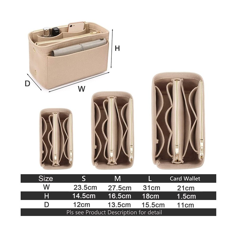 Felt Bag Organizer with Credit Card Holder, Ladies Insert Pochette in Handbag, Bag Organizer with Zipper Beige M