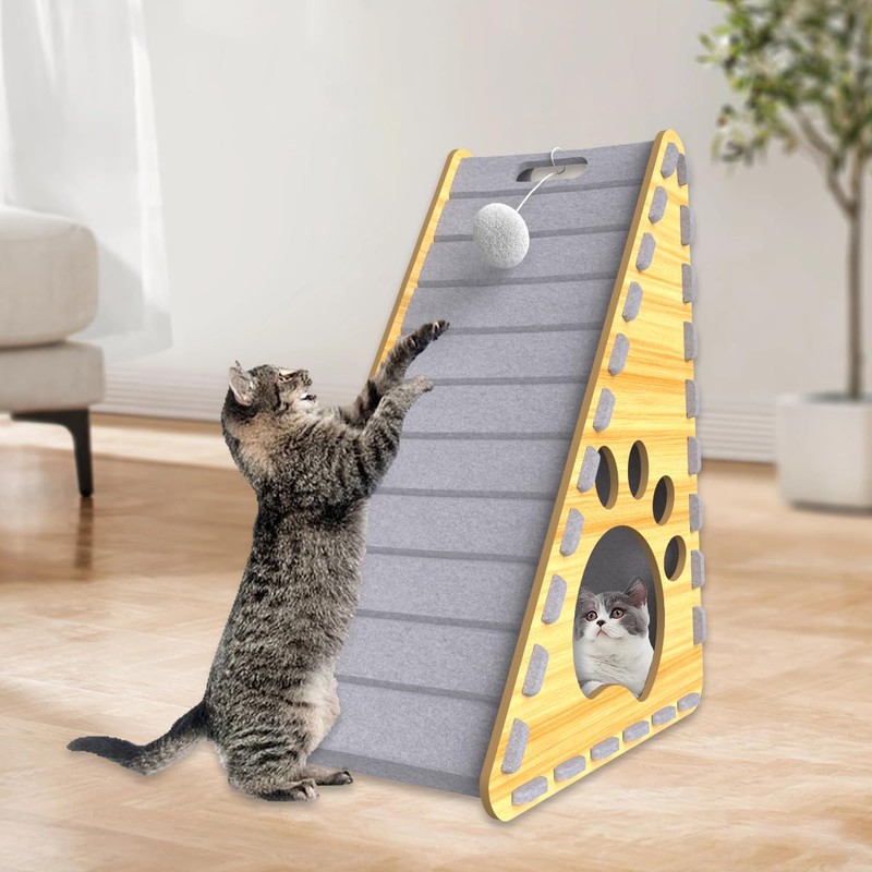 - 3-in-1 Multi-Functional Design: This innovative triangular double purpose felt cat scratcher & bed have three functions, cat scratch pad as a claw sharpener, lounging surface, and play area. our large cat scratcher have two ways to place it - scratch upright or use it horizontally as a ramp, cat scratchers for indoor cats perfect for satisfying your cat’s instincts while keeping them relaxed and entertained