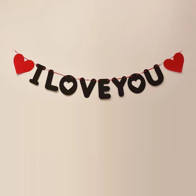 - 1 set black and red I LOVE YOU felt pennants, 1 set pink and red heart felt pennants