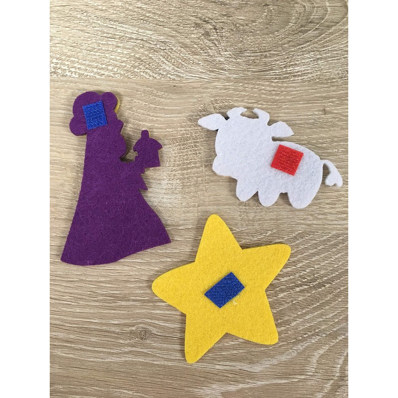 Set of 24 felt nativity scene characters. Each piece has a velcro back, making it great for a felt board or felt nativity scene advent calendar. Great for an advent or Christmas gift for the kids.