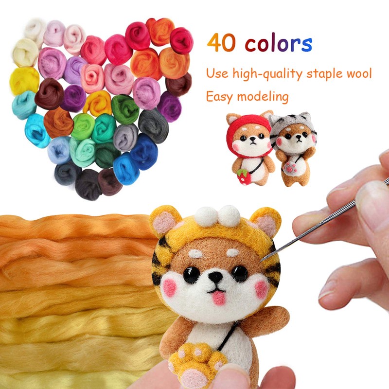 - 40 different coloured felting wool: packed in 40 small bags, each bag weighs 3 grams, so you can enjoy wool roving, needle felting, wet felting, spinning, weaving, decorating and more.