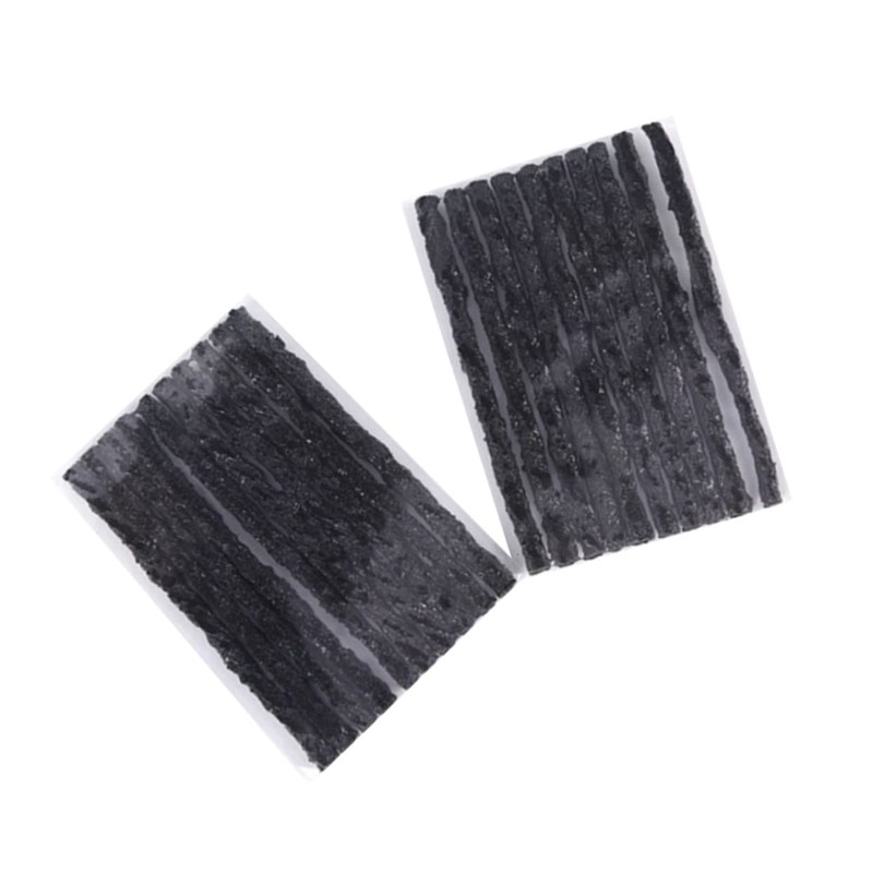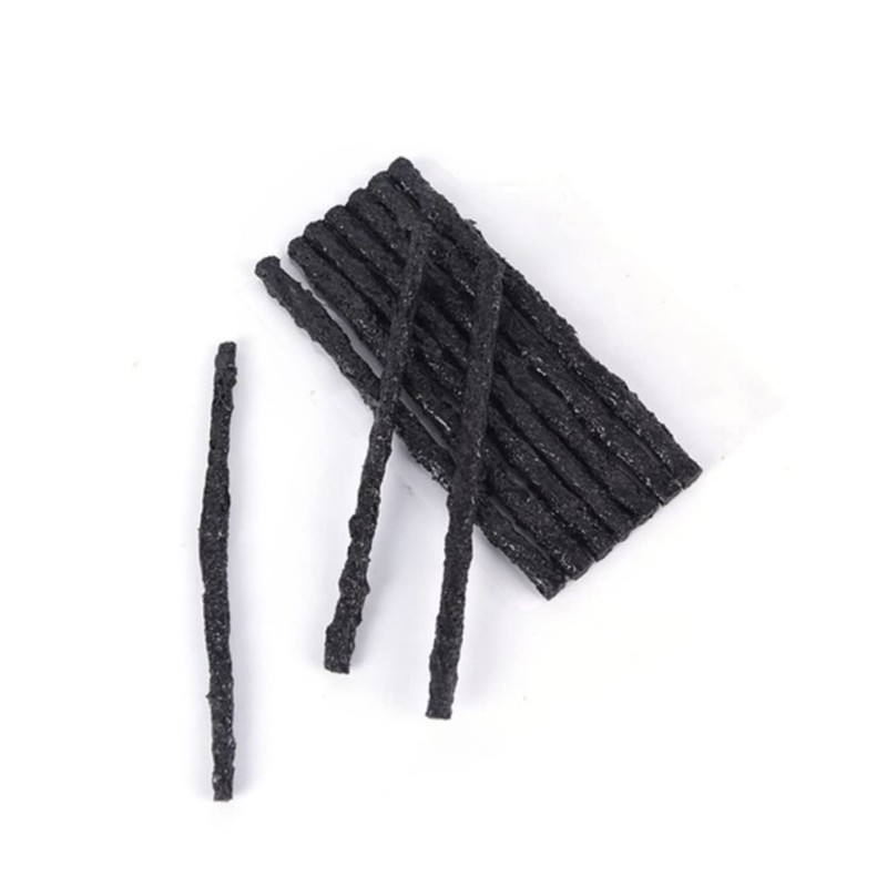 - Tire repair kit-- what you will get: puncture repair strings each size is 3.9 x 0.13 inch/ 100 x 6 mm.make sure strings pluged into tire deeply,enhance the air tightness, repair every puncture with 1 string.sufficient adhesion, abrasion life, can effectively stick to rubber tires.