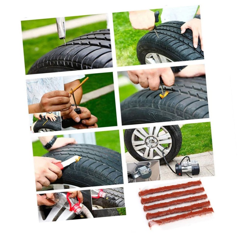 - Tire repair rubber strip: easily repair punctures without removing the tire from the rim.