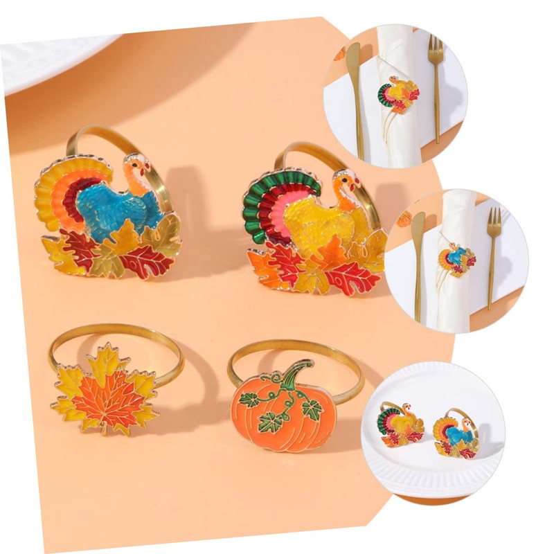 table napkin rings These are autumn napkin buckles, which are made of sturdy alloy material.party napkin buckle A set of great dining table decorations, they will increase the elegant and warm atmosphere.metal trim They have look design and bright color