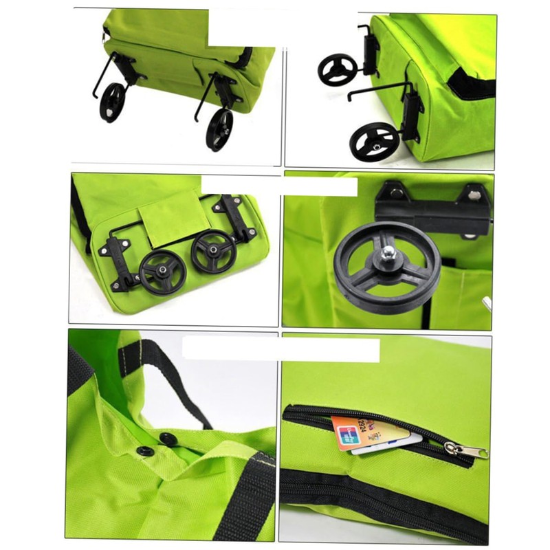 FELTECHELECTR Foldable Portable Shopping Trolley Bag with Wheels Oxford Fabric Cart for Easy Travel and Shopping Lightweight Reusable for Everyday Use Green