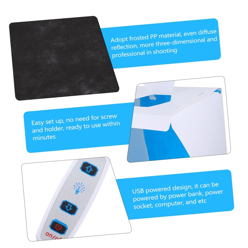- Adopt frosted PP material, even diffusereflection, more three-dimensional and professional in Backdrops Light Box.
