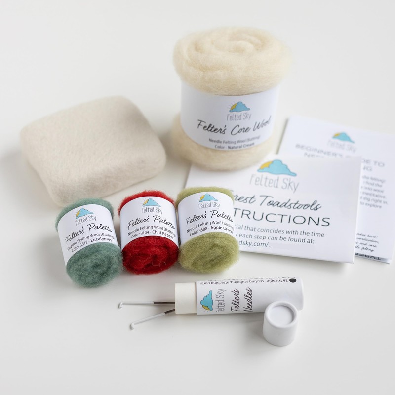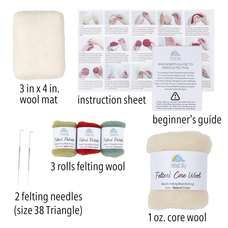 - FOR BEGINNER AND INTERMEDIATE FELTERS: This mushroom project is enjoyable for adults and teens who are complete beginners OR have already done some needle felting. Ideal for those who possess good manual dexterity, hand-eye coordination, and ability to work with focus. Kit includes felting needles, which are sharp, so please be careful!