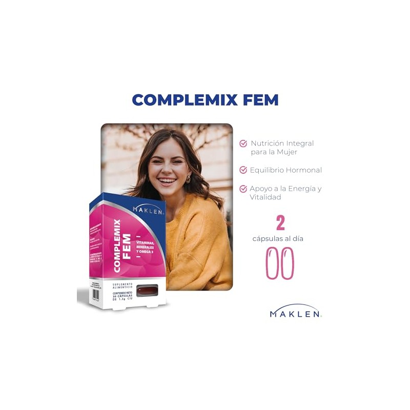 MAKLEN - FEM MultiVit | Multivitaminico para Mujer con Omega 3 | 30 Capsulas Softgels | Complemix Fem Conjunto de Vitaminas, Minerales y Omega 3 para la Mujer | Maklen. ✅ Diseño innovador que supera las expectativas. Tecnología avanzada y rendimiento superior. 📦 Entrega rápida y segura. Ideal para quienes buscan lo mejor en calidad y estilo. Producto auténtico con satisfacción total asegurada. ¡No te quedes sin el tuyo y aprovecha esta oportunidad única!