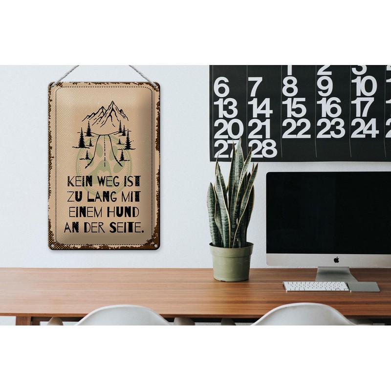 Femer Blechschild Spruch 20x30 cm Kein weg zu lang Hund Schild