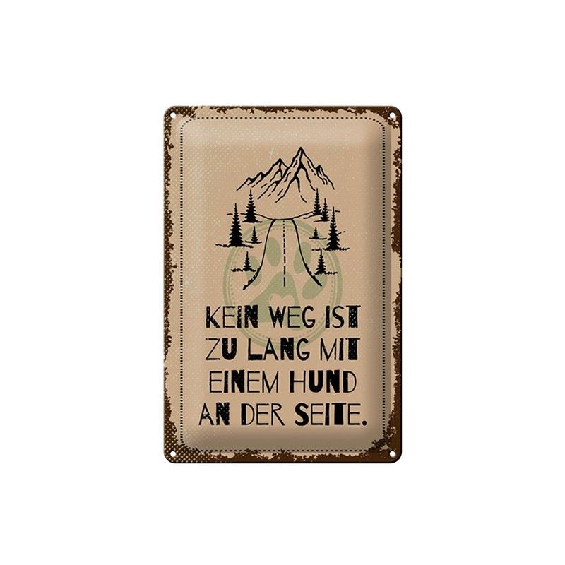 Femer Blechschild Spruch 20x30 cm Kein weg zu lang Hund Schild