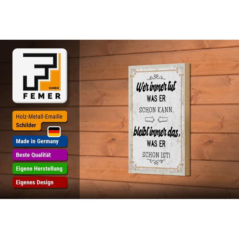 Femer Holzschild Spruch 12x18 cm Wer immer tut was er schon kann Deko Schild